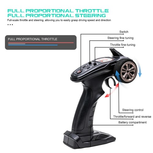 [ Proportional throttle and steering control ]: Equipped with a 2.4GHz full-scale synchronous remote control system, this RC truck can perform Full proportional throttle and steering. Full-size throttle and steering, allowing you to easily grasp driving.