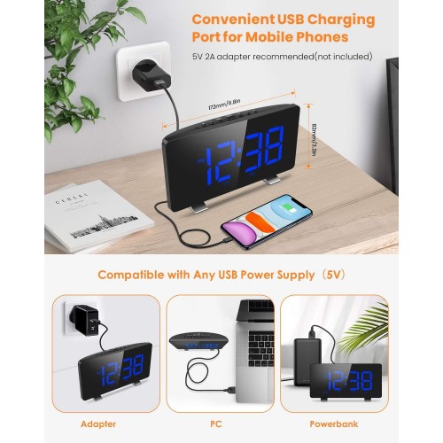 USB Charging Port & Back-up Battery: The USB output port attached on the back of the alarm allows you to easily charge cellphone or other devices, which avoids the low battery while you sleep. Also, no need to set time or the alarm again when you want to place it on another place or power off at home as it comes with a back up battery. Note: please use the 5V plug to power the device to get a better experience.(Note: plug is not included)