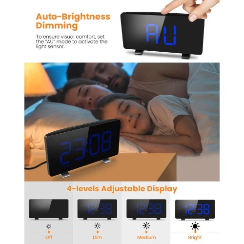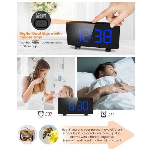 Dual Alarms with Adjustable Snooze Time: Supports dual alarms, two separate alarm times can be set simultaneously. What's more, the snooze feature allows additional sleep of 5-60 minutes, the default snooze time is 9 minutes, you can always have a snooze time for yourself.
