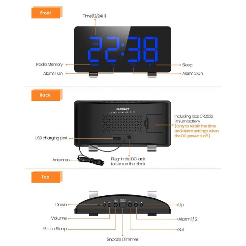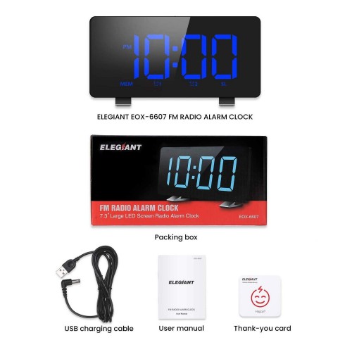 6.7'' Large LED Display: Adopted LED display with large blue digits, the ELEGIANT 6607 Alarm Clock can be seen from every angles. Specifically selected Blue-Light Digits are eye-friendly for daytime and nighttime.